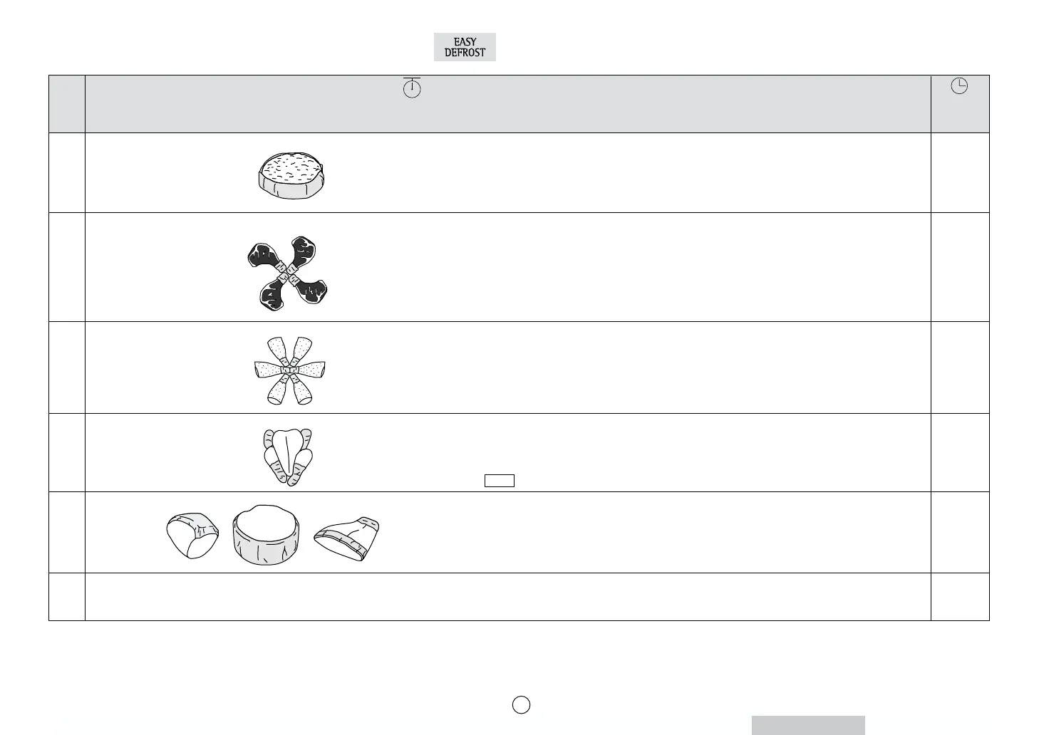 • Position the food with thinner parts in the centre in a single layer on a defrost rack.