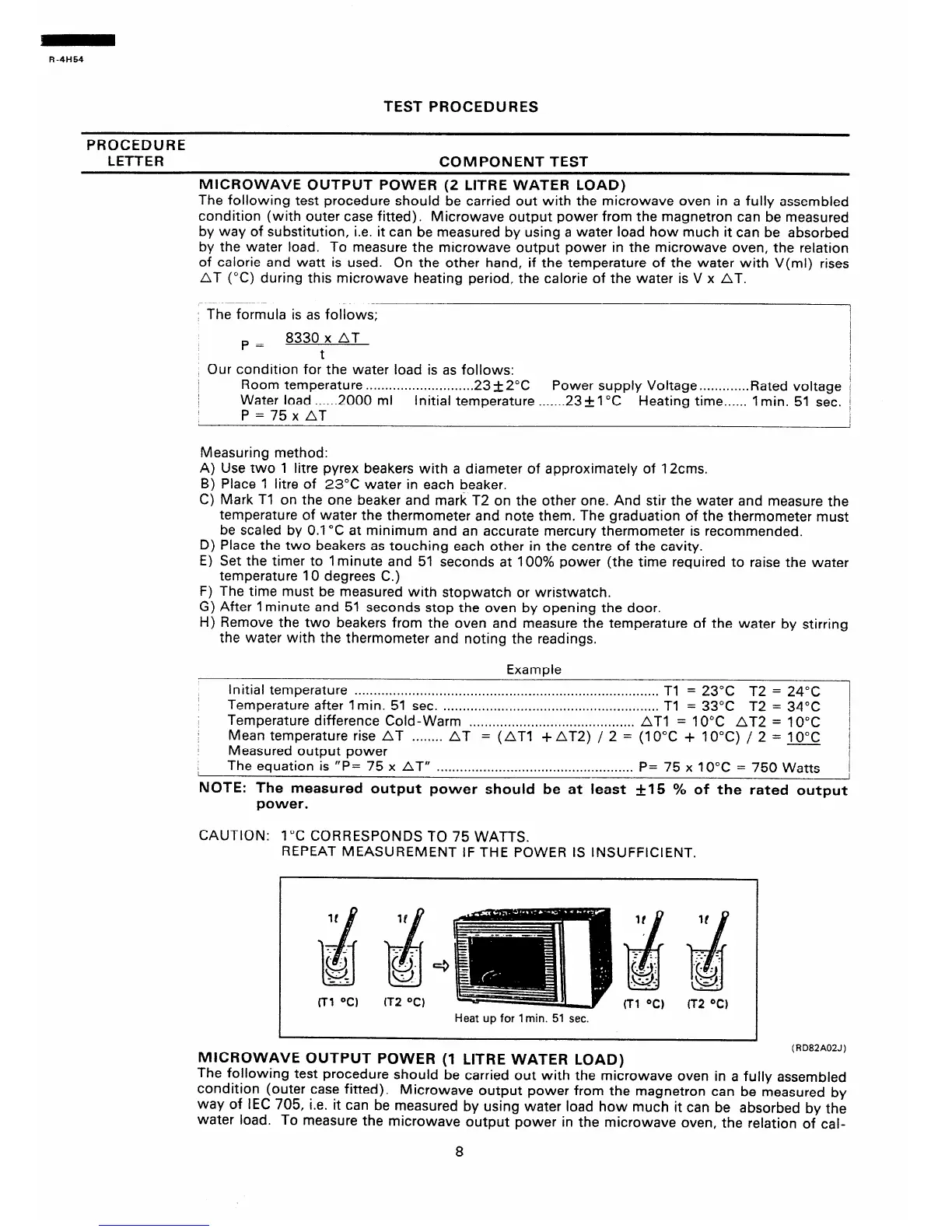 The following test procedure should be carried out with the microwave oven in a fully assembled
