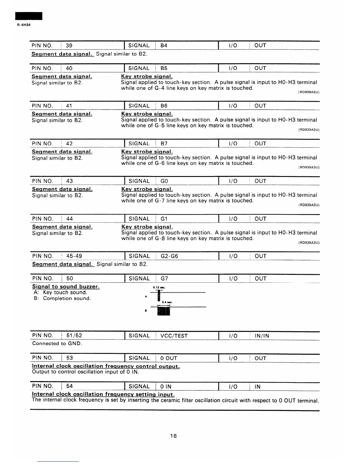 Signal applied to touch-key section. A pulse signal is input to HO-H3 terminal