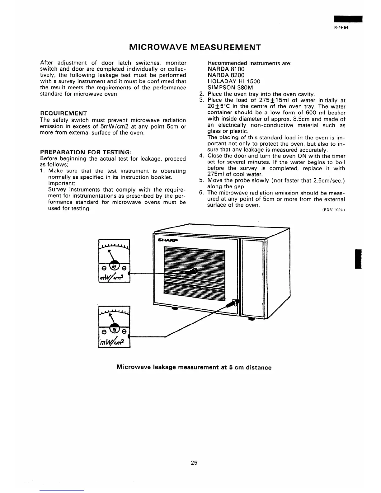 Microwave leakage measurement at 5 cm distance