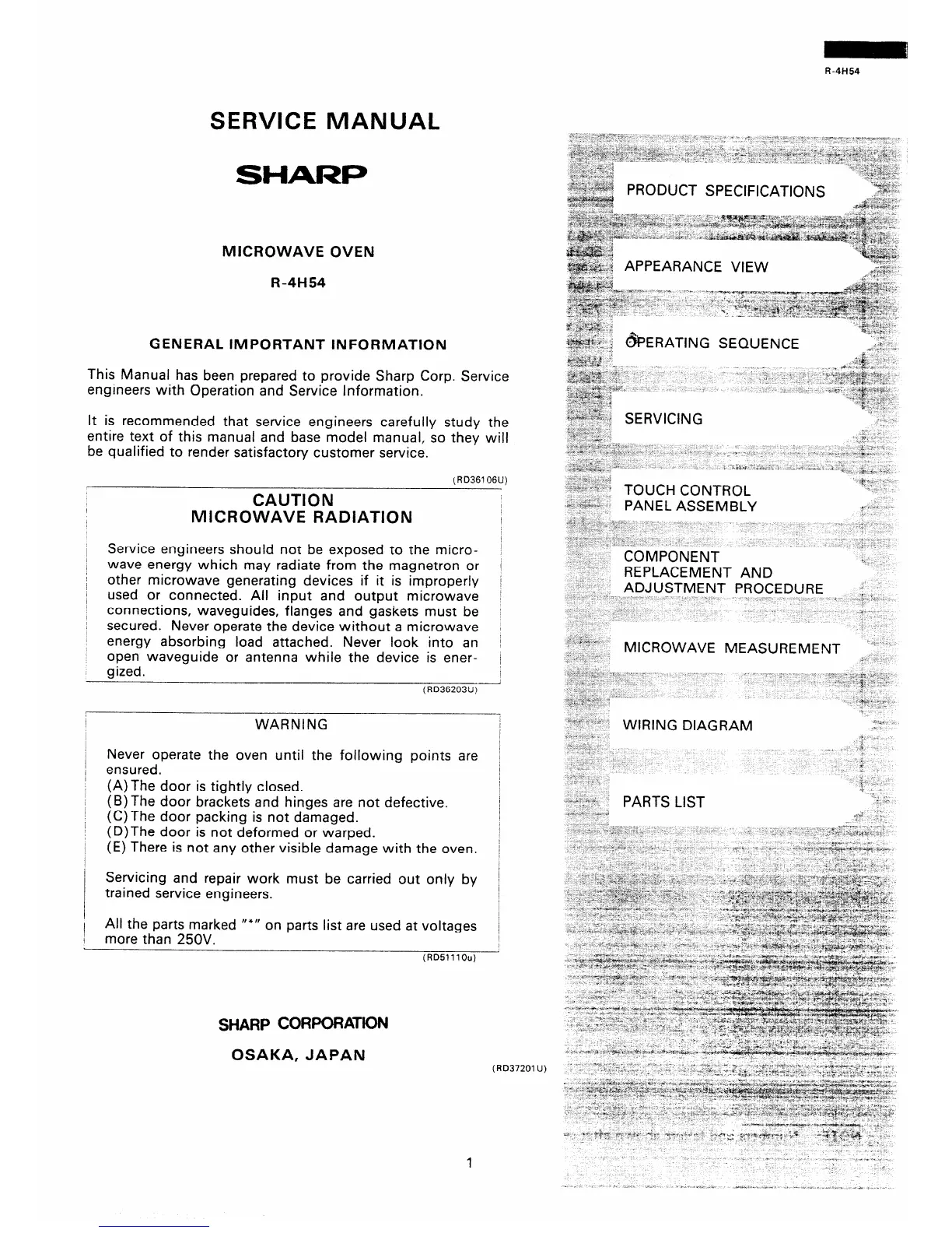 This Manual has been prepared to provide Sharp Corp. Service
