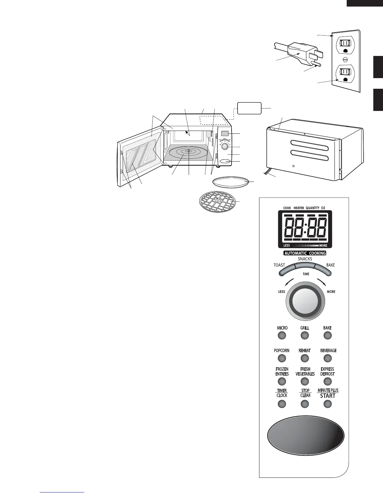 Some one-touch cooking features such as "MINUTE PLUS" are dis-