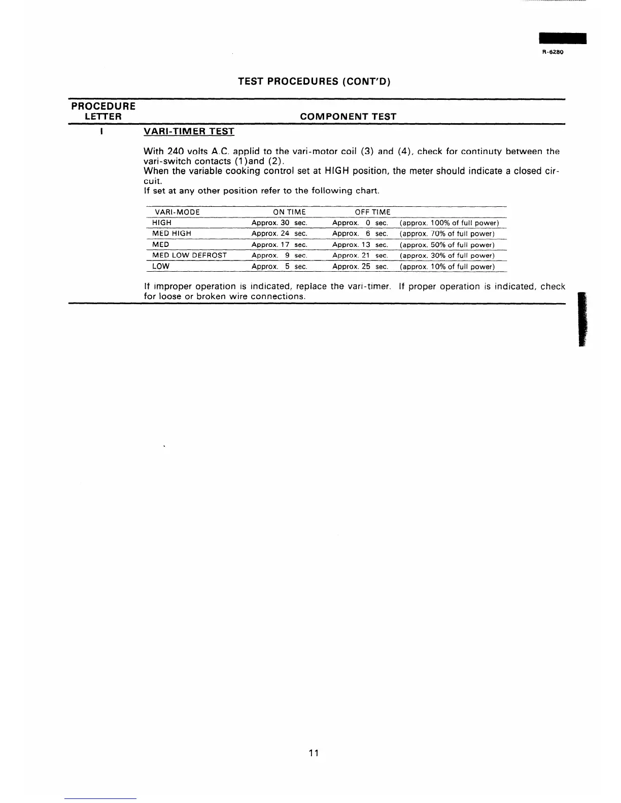 If improper operation is indicated, replace the vari-timer.