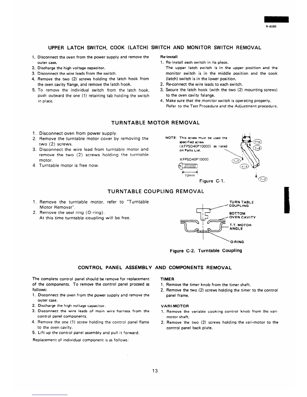 UPPER LATCH SWITCH, COOK (LATCH) SWITCH AND MONITOR SWITCH REMOVAL