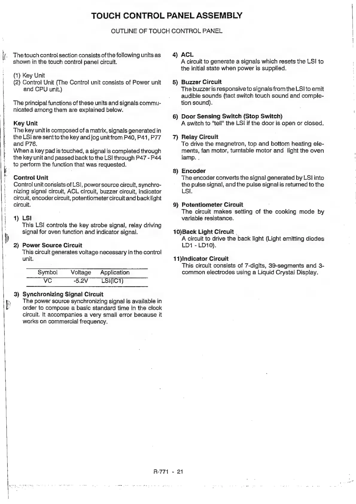 Sharp R-771(W)N - Touch Control Panel Assembly; Outline of Touch Control Panel
