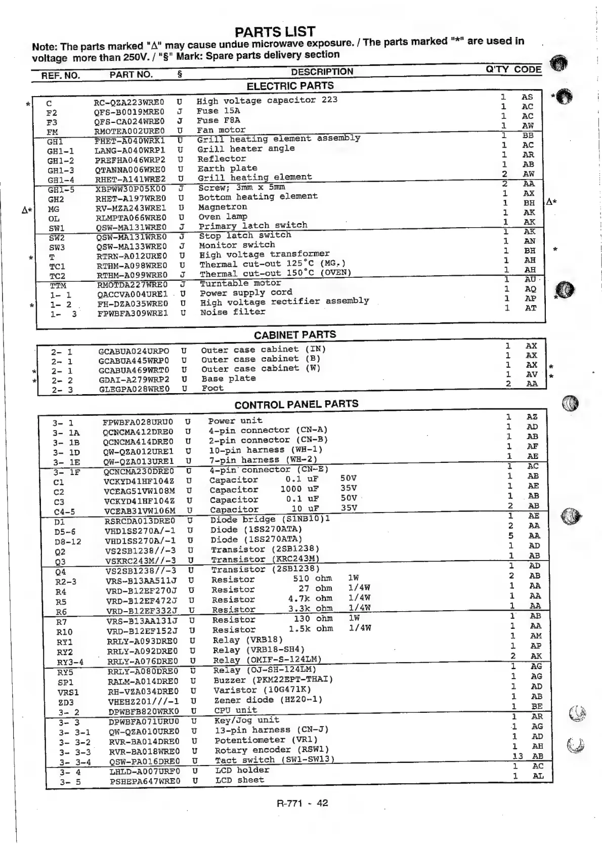 Sharp R-771(W)N - Electric Parts