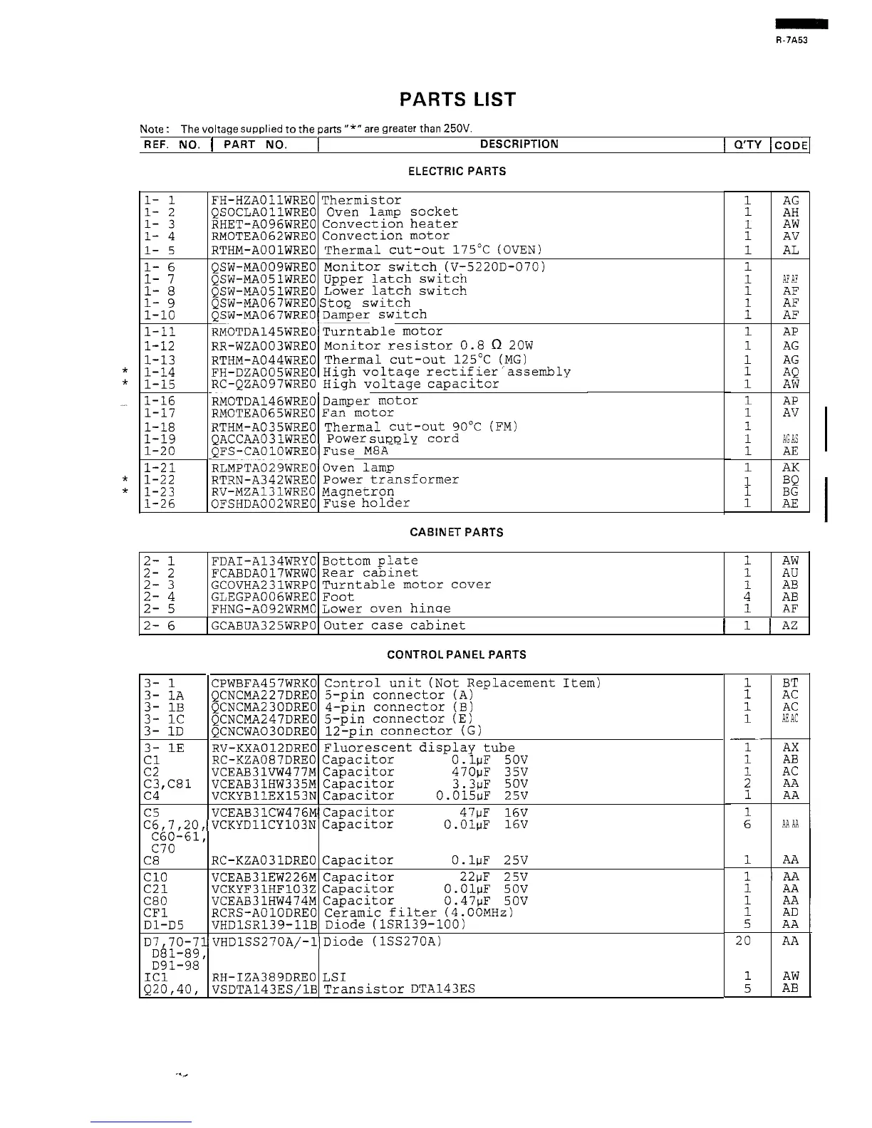PARTS LIST