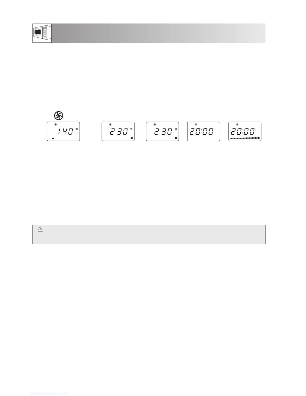 közben a hűtőventilátor be- és kikapcsolása hallható. Ez teljesen normális, és nincs hatással a sütésre.