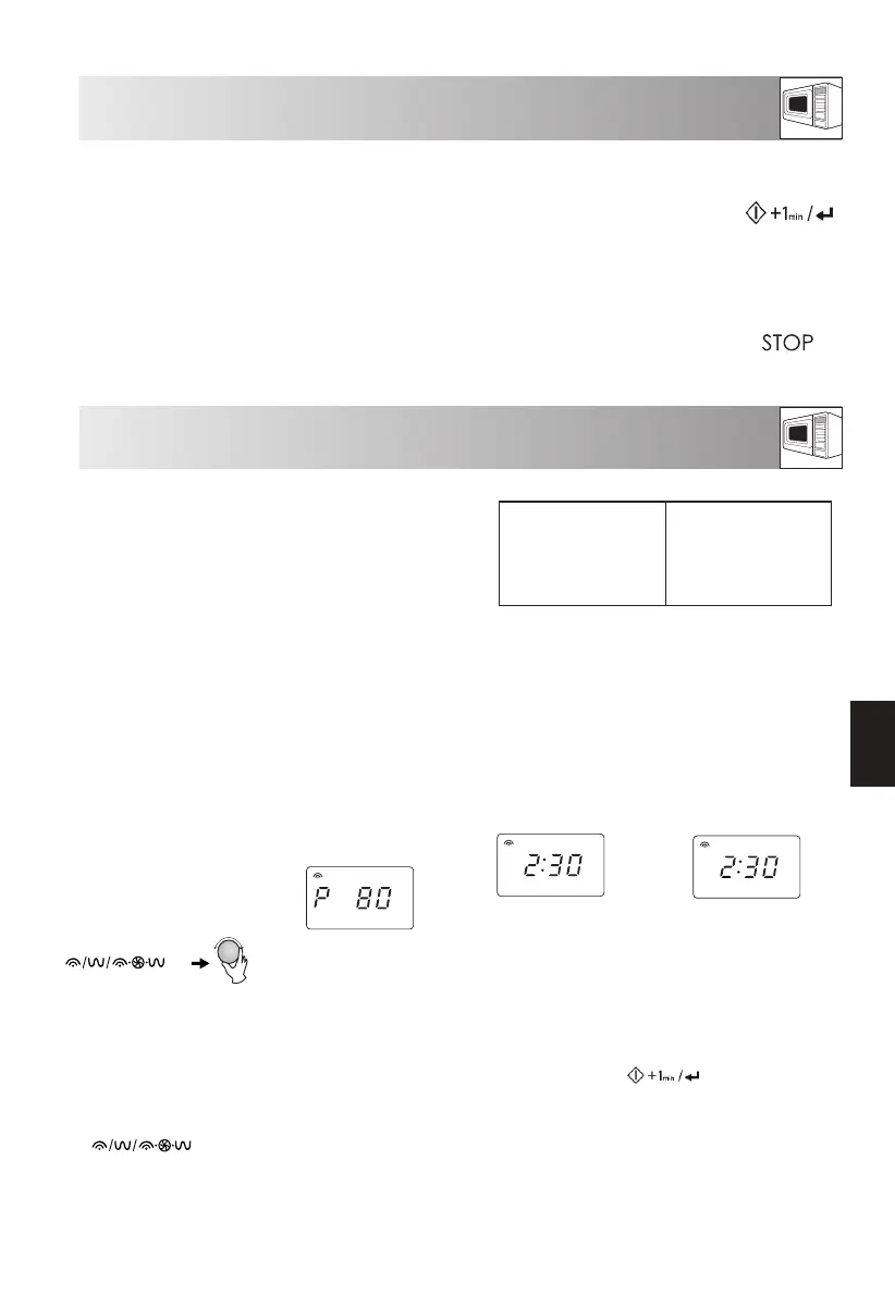 • Voer de kooktijd in en gebruik een magnetronvermogen van P100 tot P10 om te koken of te ontdooien (zie