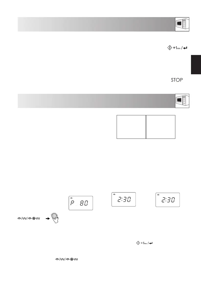 • Geben Sie die Garzeit ein und verwenden Sie zum Garen oder Auftauen die Leistungsstufen P100 bis P10 (sie-