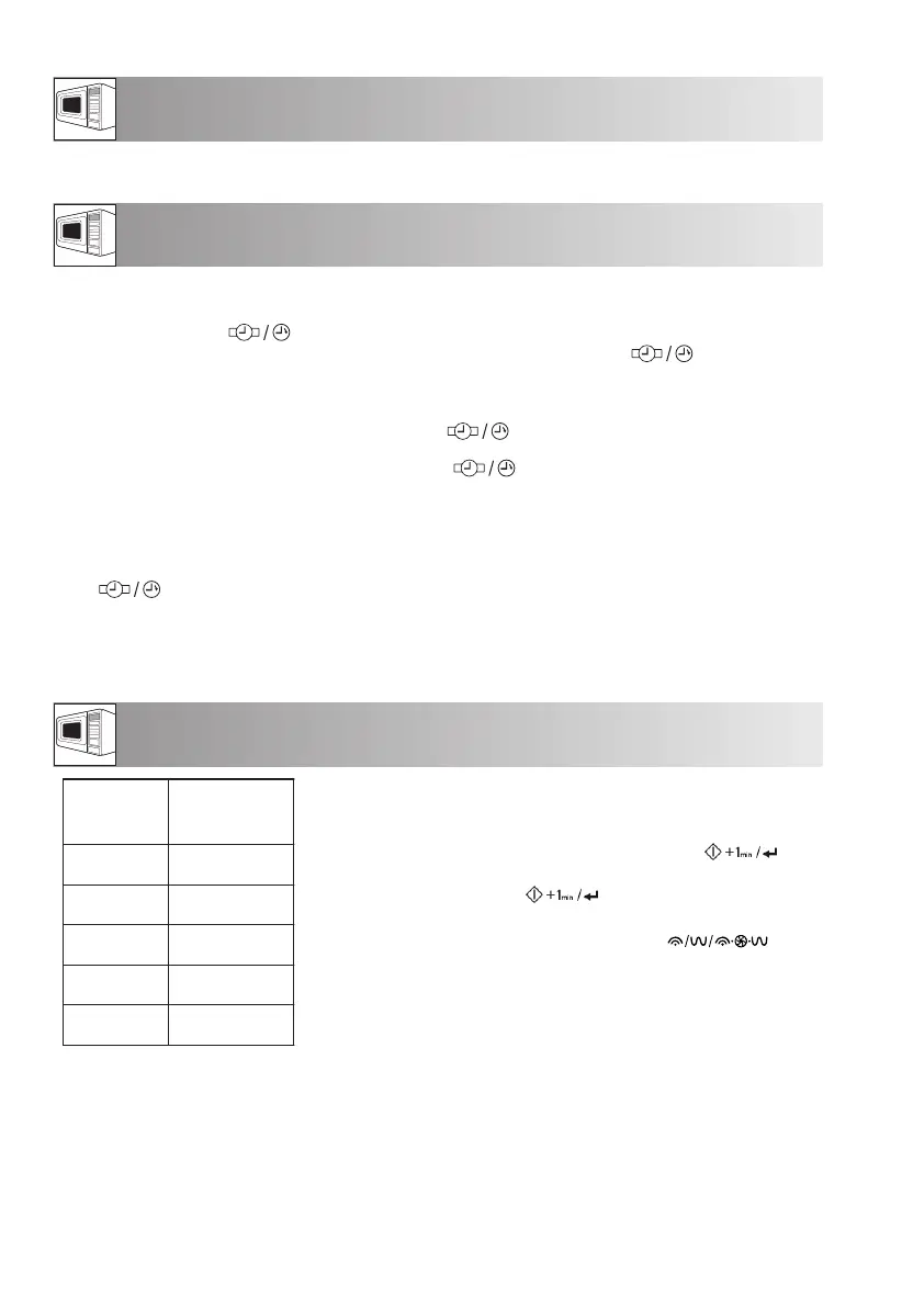 • For å se hvor mye klokken er under en tilberedningsprosess, trykk KLOKKESTILLING/KJØKKENTIDSUR-knap-
