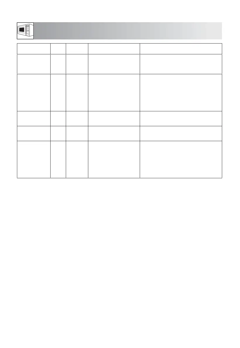 • The nal temperature will vary according to the initial food temperature. Check food is piping hot after cooking. If necessary,