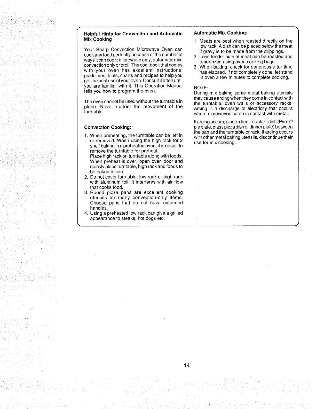 If arcing occu rs, place aheat resistant dish (Pyrex _
