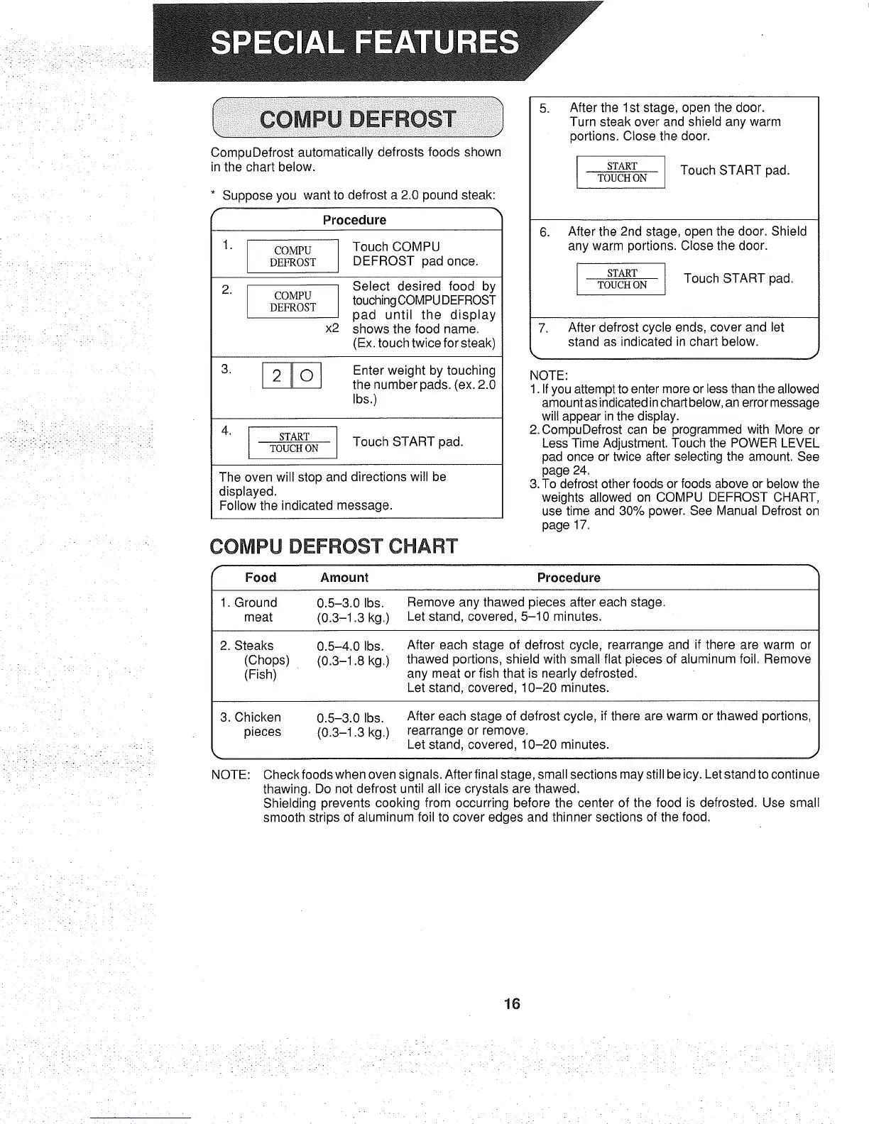 3 Chicken 0.5-3.0 bs. After each stage of defrost cycle, if there are warm or thawed portions,