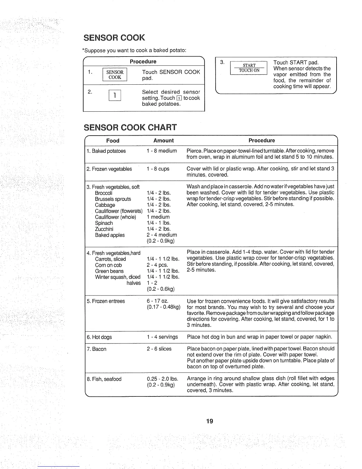 1. Baked potatoes 1 - 8 medium Pierce. Place on paper-towel-lined turntable. Aftercooking, remove