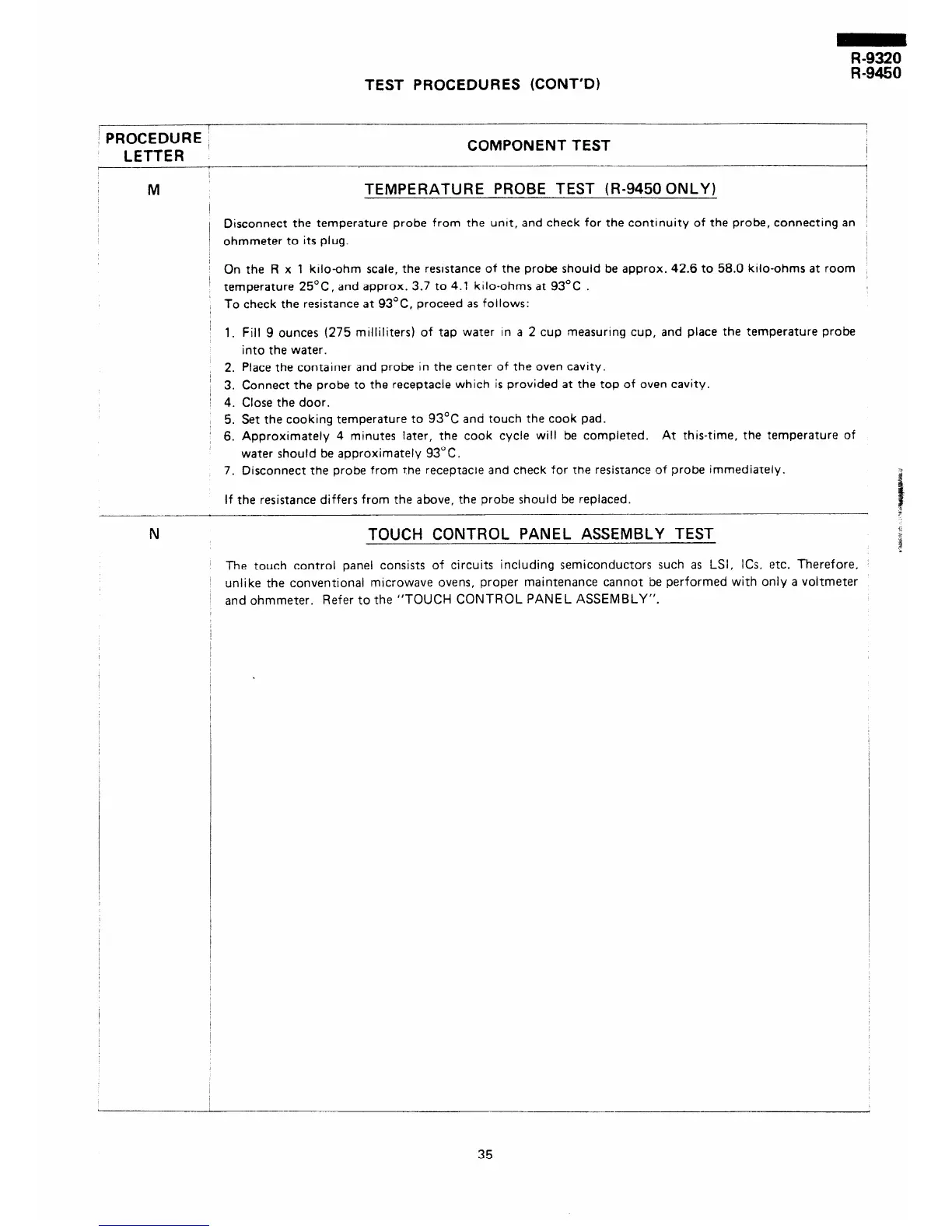 TEMPERATURE PROBE TEST (R-9450 ONLY)