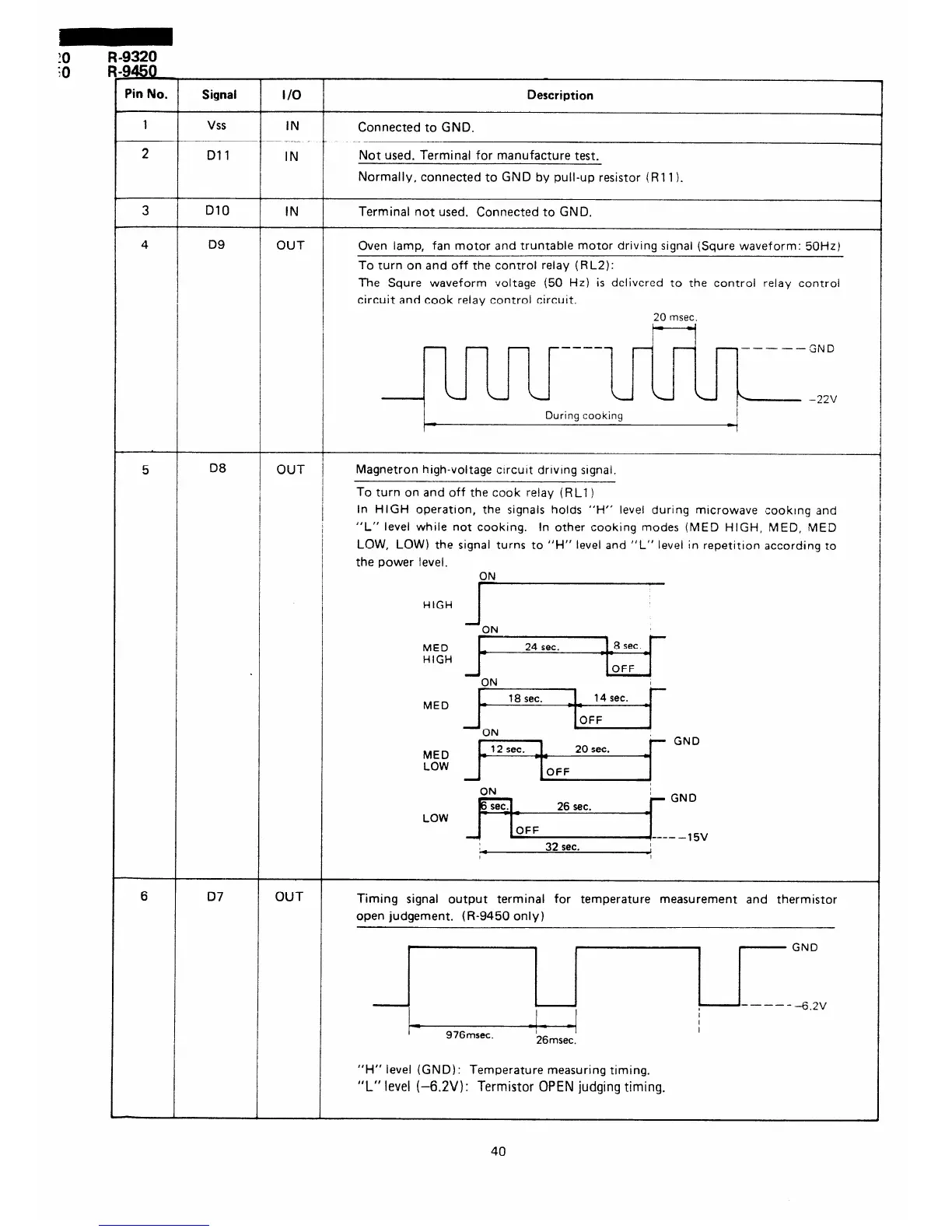 OUT Oven lamp, fan motor and truntable motor driving signal (Squre waveform: 50H.z)
