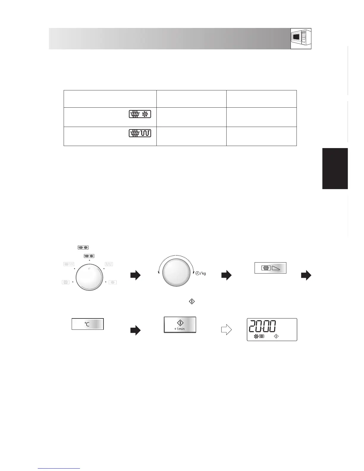 la modalidad deseada en el display. Generalmente el tiempo de cocción total se acorta con este modo.