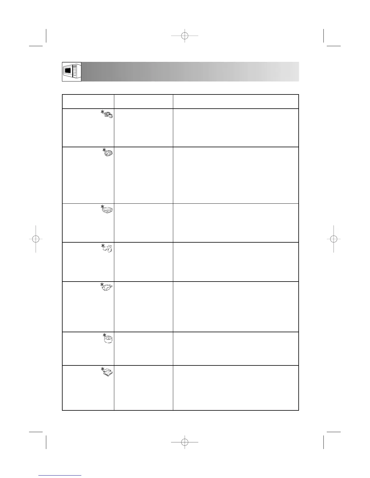 • After defrosting, cover in aluminium foil for 5-10