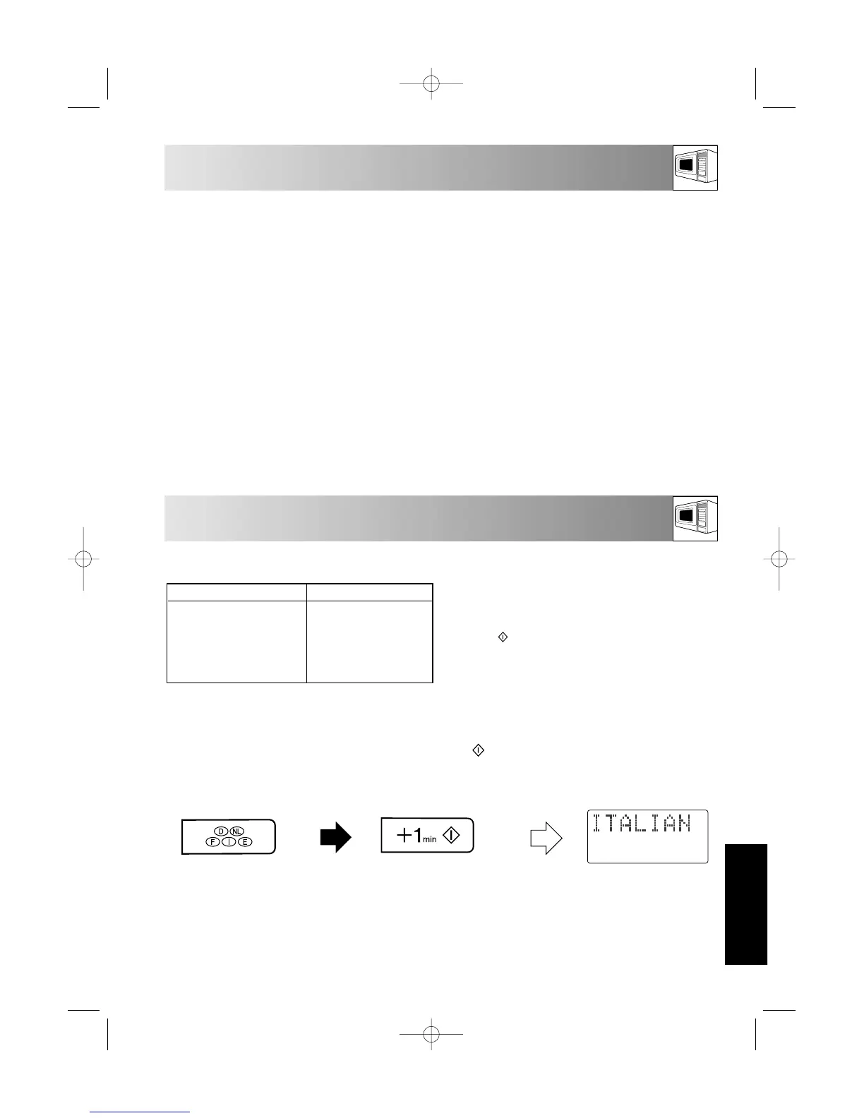 NOTE: The selected language will be memorised even if the electical power supply is interrupted.