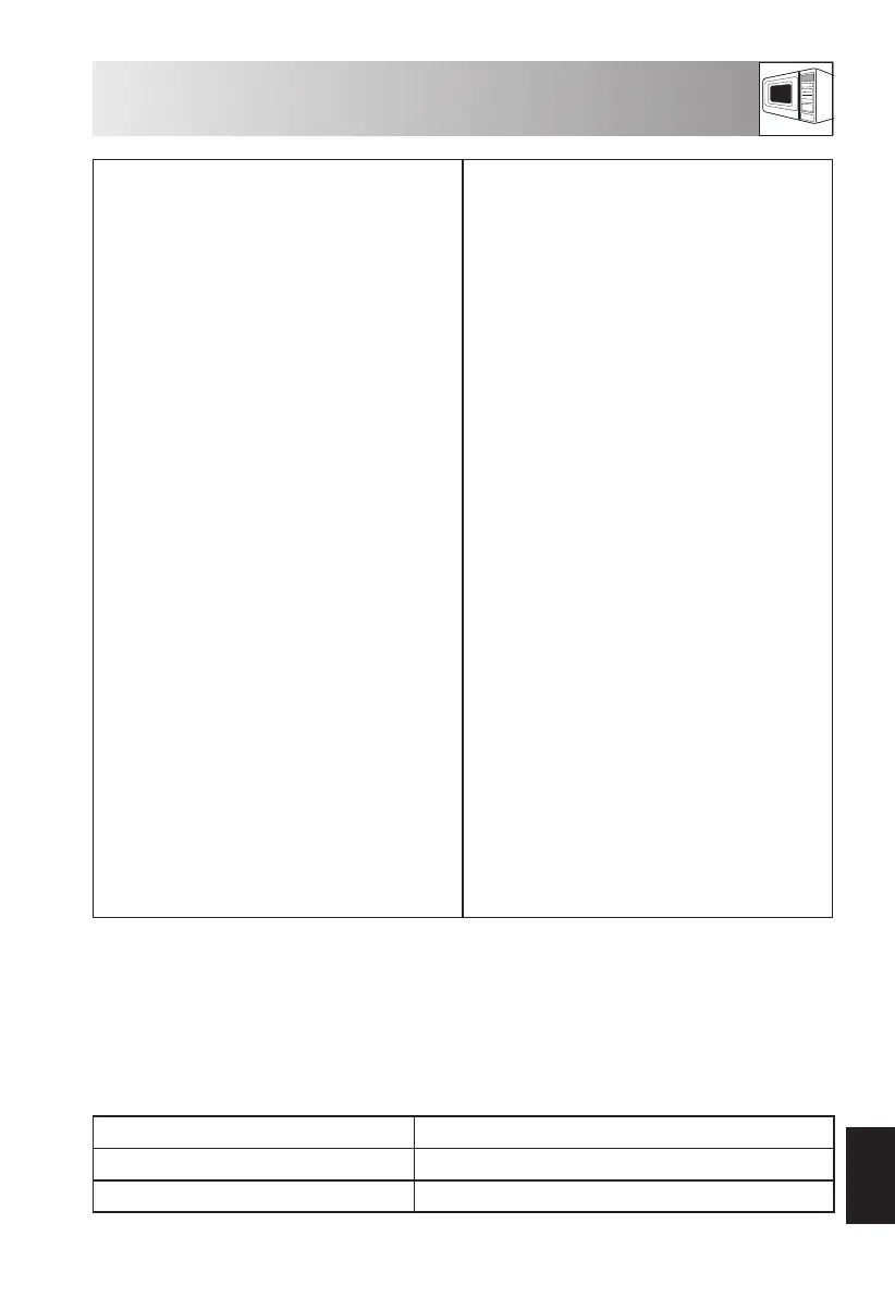 • If you cook food for more than the standard time (see chart below) using the same cooking mode, the