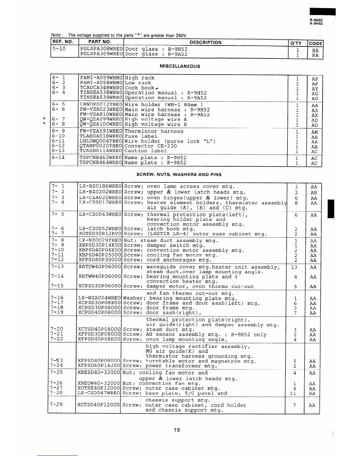 Note : The voltage supplied to the parts “*I’ are greater than 250V.