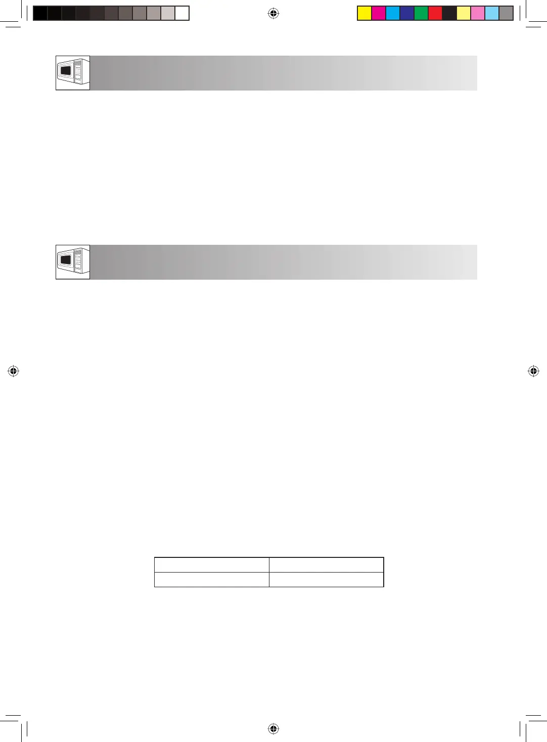 lydsignal. Ovnslampen vil slås av automatisk og tallerkenen vil slutte å rotere. Åpne ovnsdøren, fjern