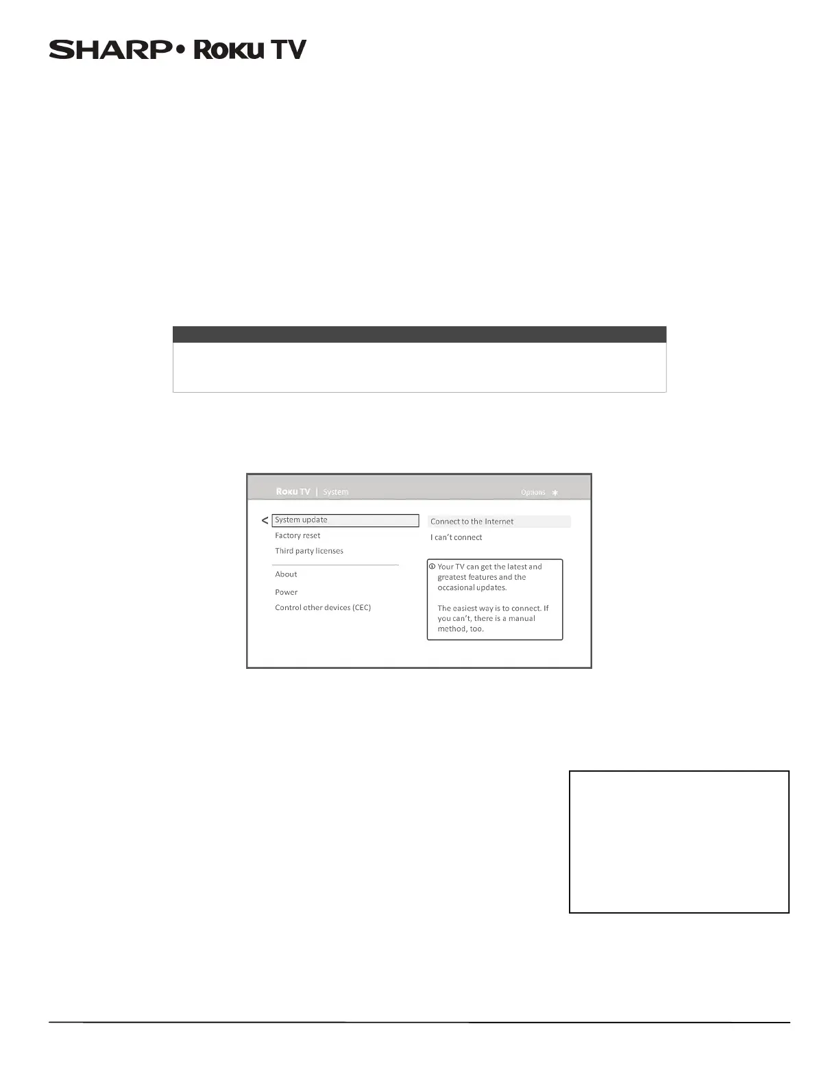 The System update screen on a non-connected TV gives you the opportunity to connect your TV to the Internet to