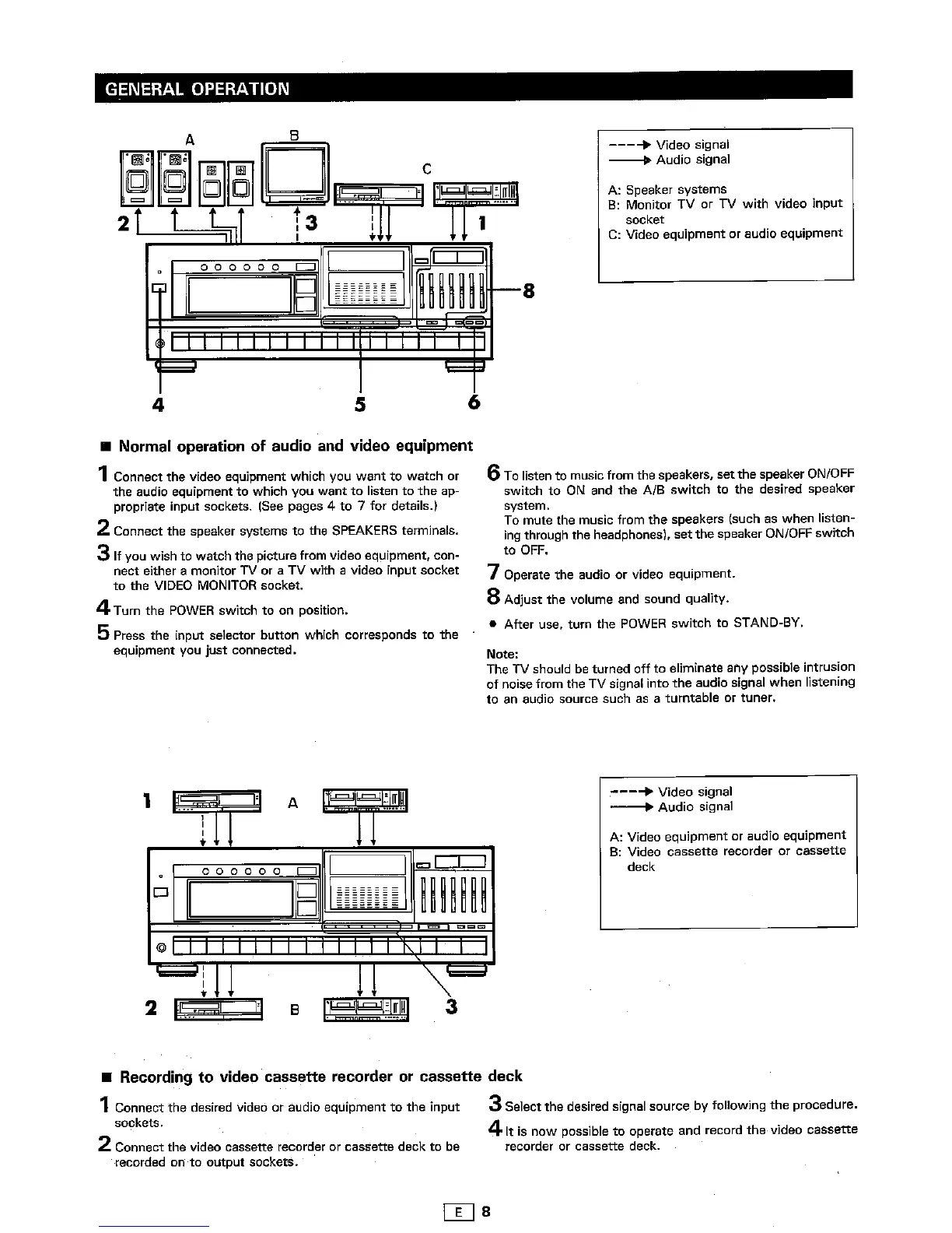 Sharp SA-CD800H - General Operation; Normal Operation of Audio and Video Equipment; Recording to Video Cassette Recorder or Cassette Deck