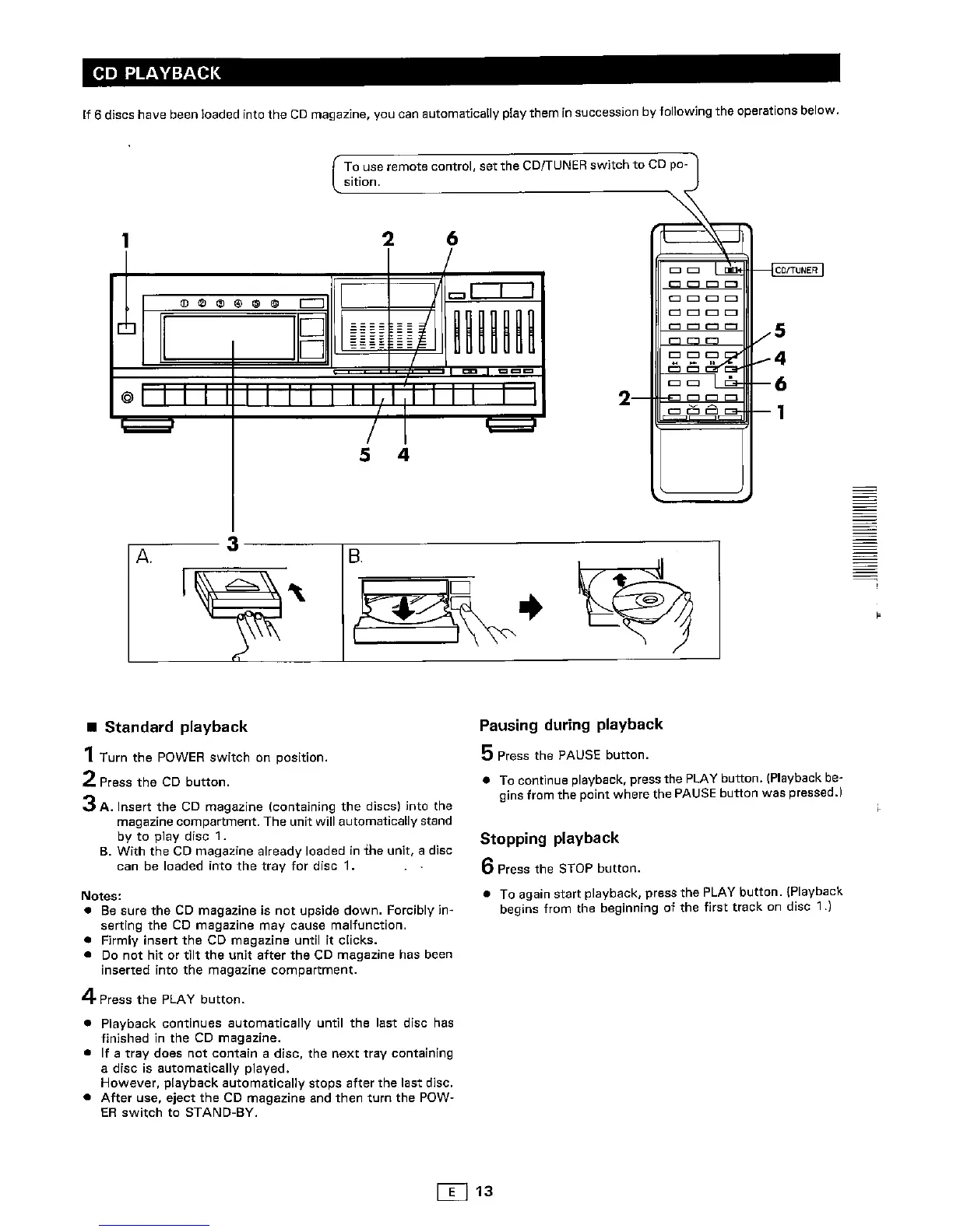 Sharp SA-CD800H - CD Playback; Standard Playback; Pausing During Playback; Stopping Playback