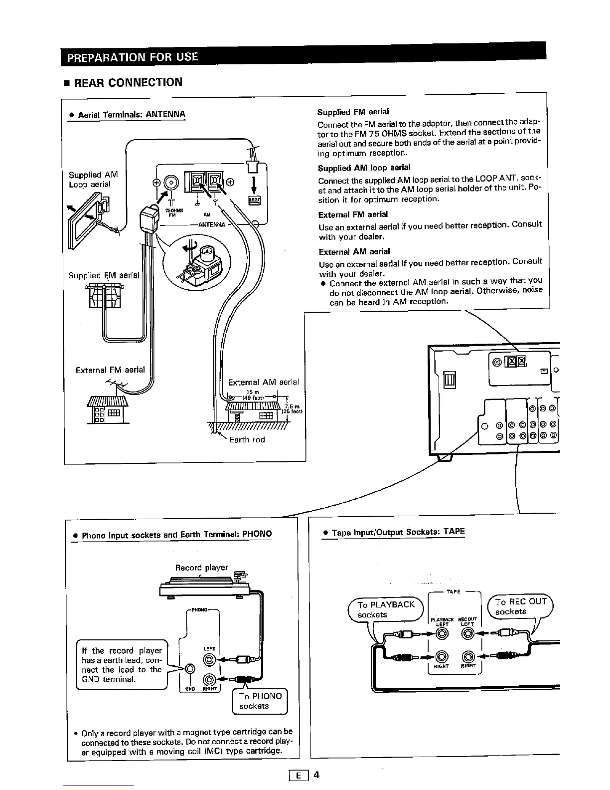 Sharp SA-CD800H - Preparation for Use; Rear Connection; Supplied FM Aerial; External FM Aerial