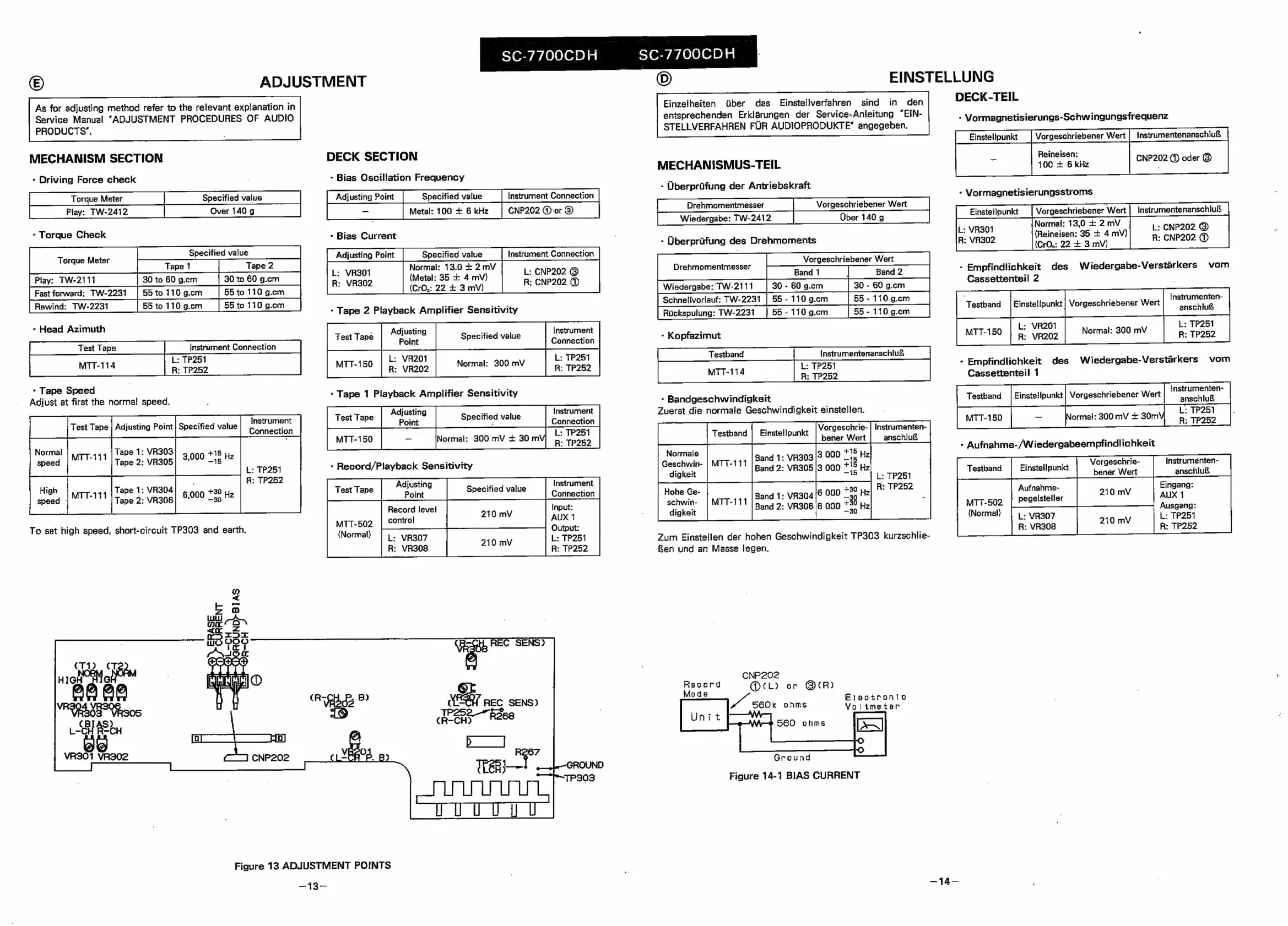 Sharp SC-7700CDH - Adjustment; Mechanism Section Adjustments; Deck Section Adjustments; Cassette Playback Adjustments