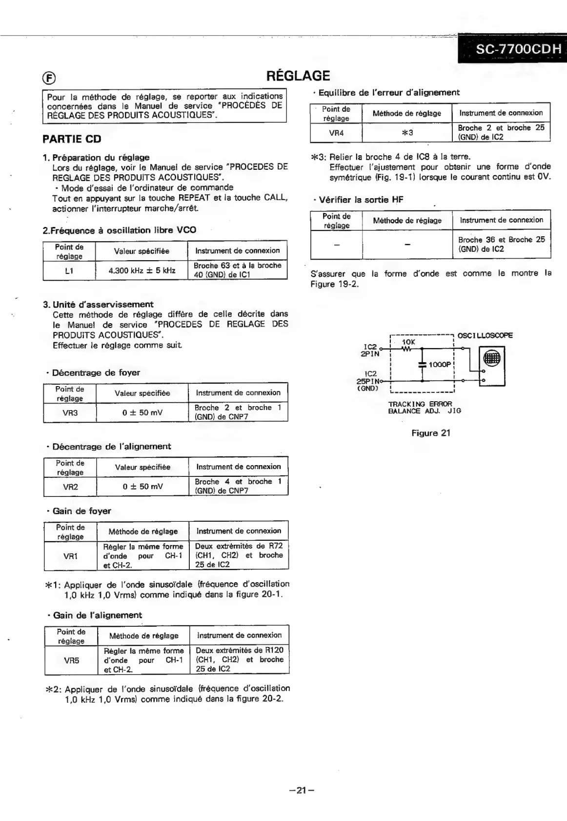 Sharp SC-7700CDH - Réglage; CD Section Preparation (French); VCO Free-Run Frequency Adjustment (French); Servo Unit Adjustments (French)