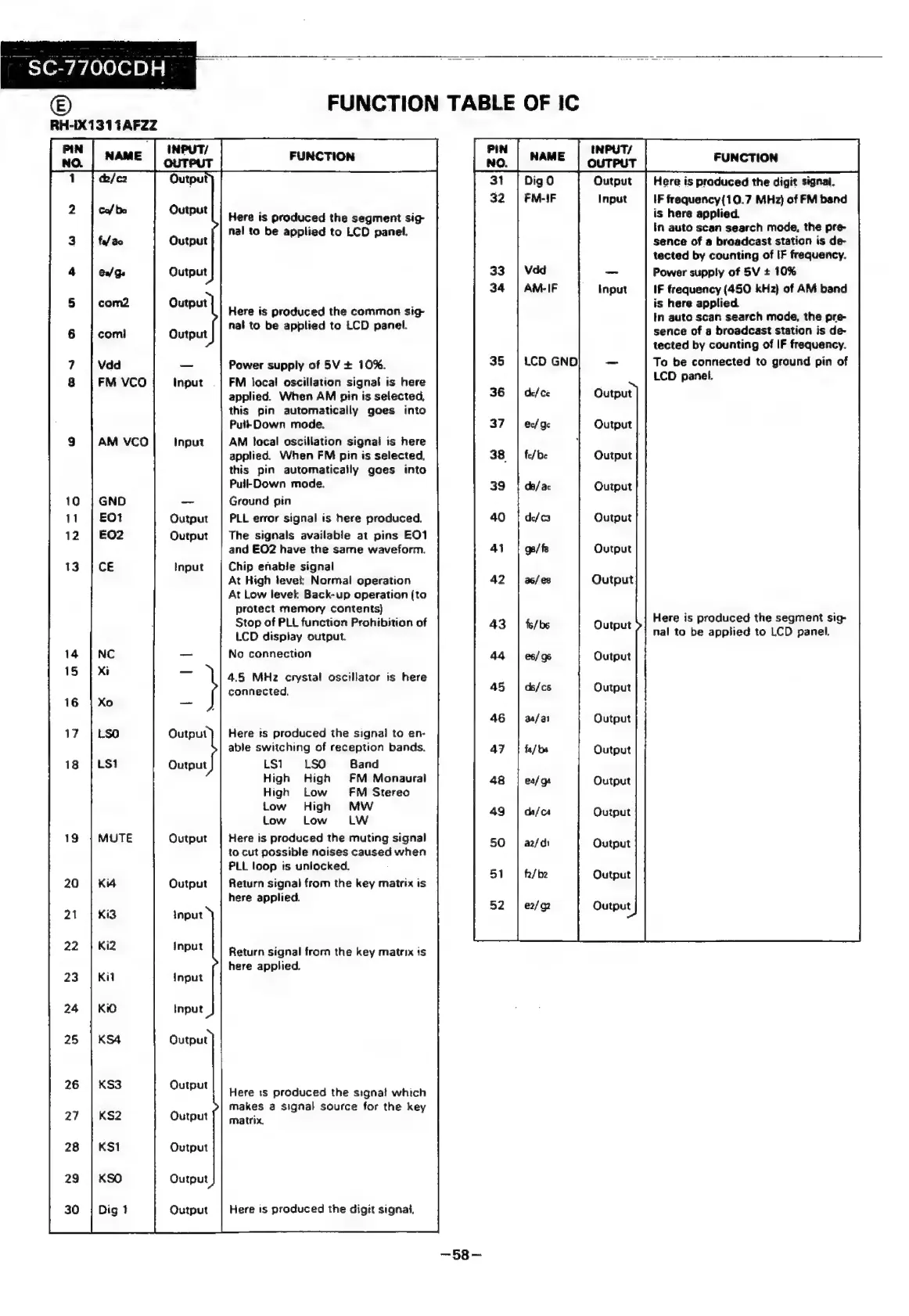 Sharp SC-7700CDH - Function Table of IC (Continued)