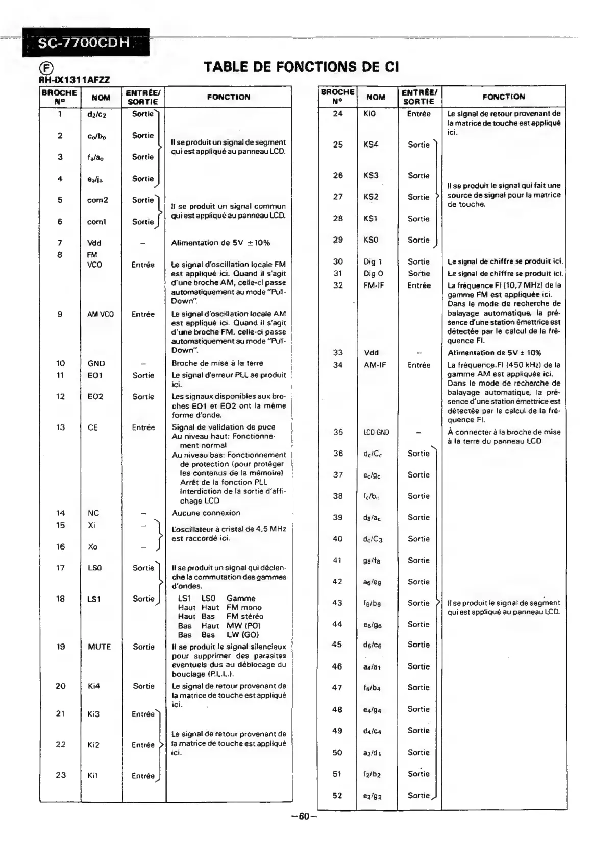Sharp SC-7700CDH - Table de Fonctions de CI (Continued)