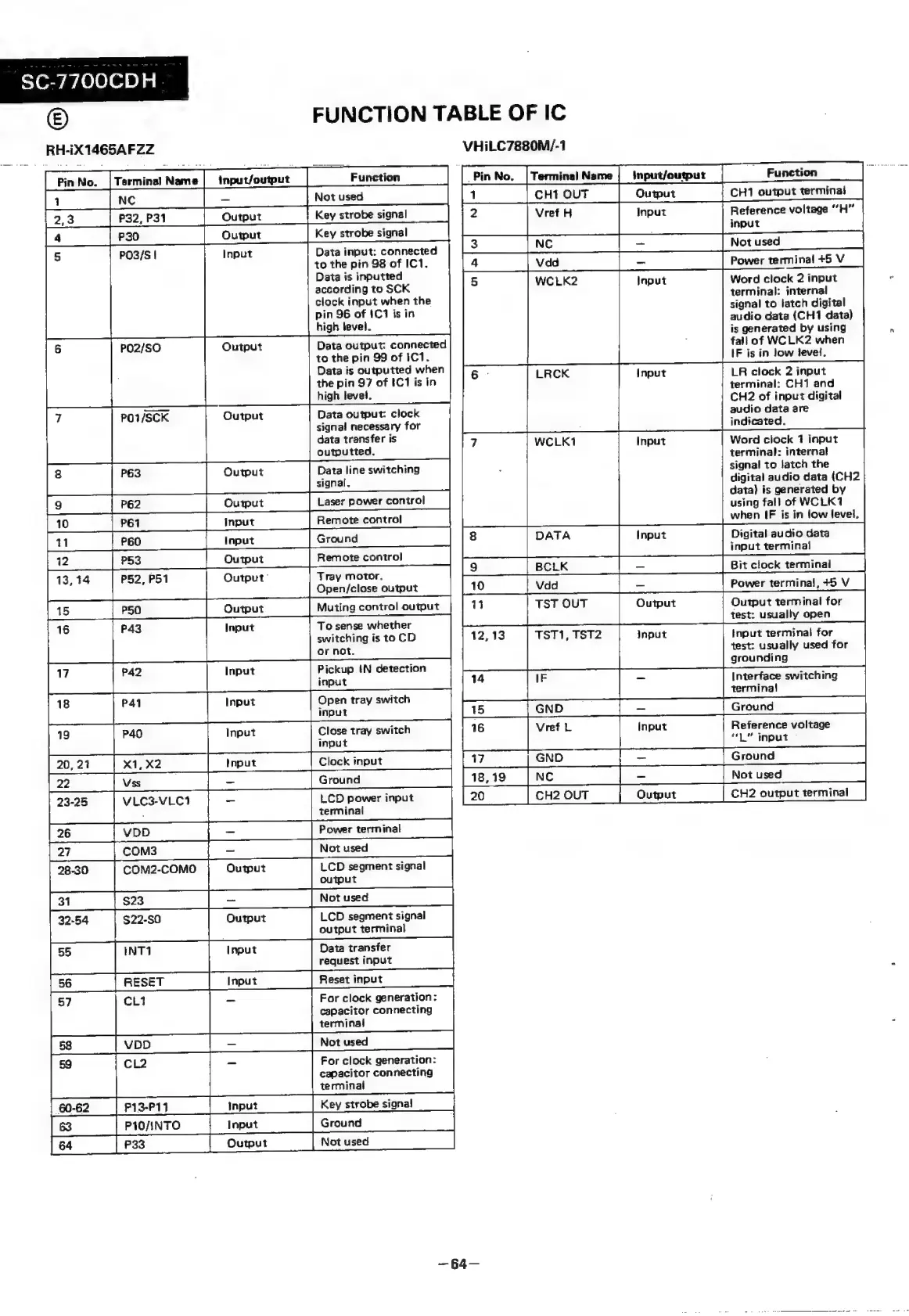 Sharp SC-7700CDH - Function Table of IC (VHILC7880 M;-1)