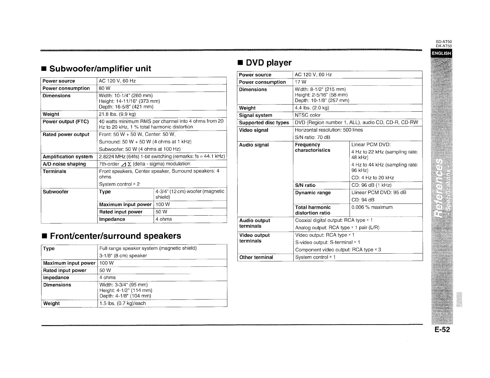 Subwoofer: 50 W (4 ohms at 100 Hz)