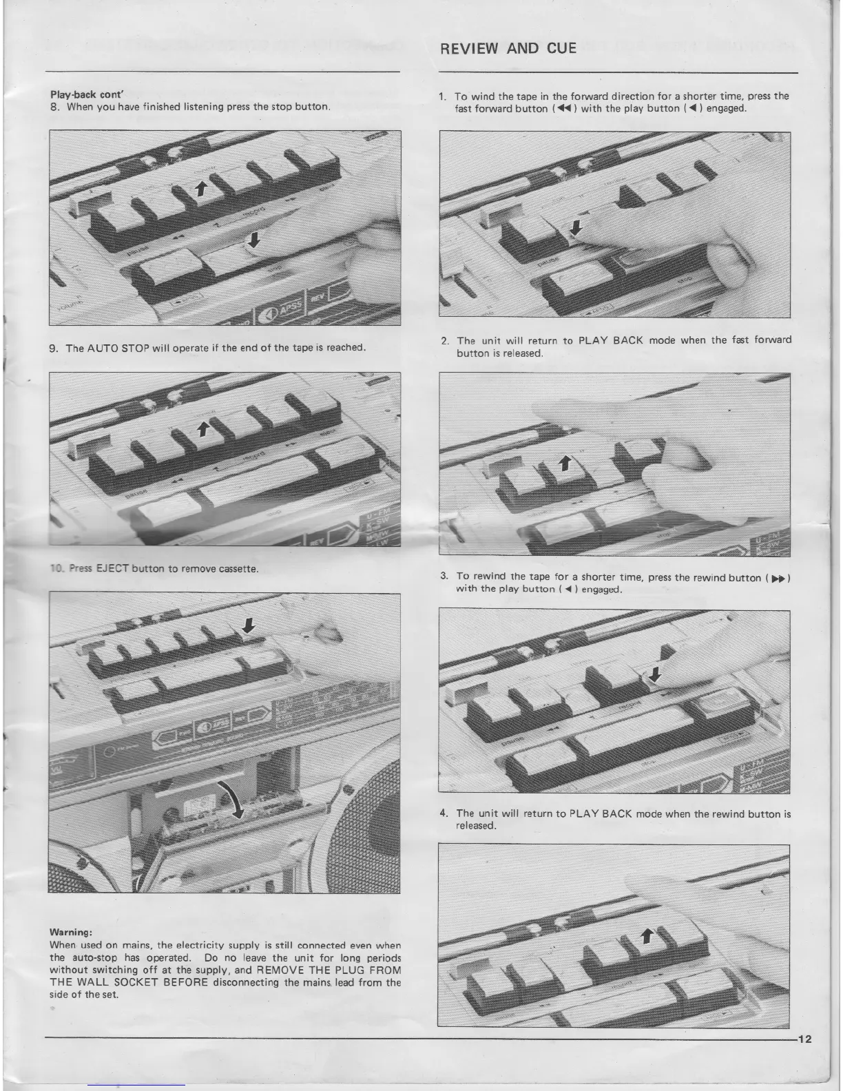 Sharp Searcher GF-9191E - Review and Cue; Warning