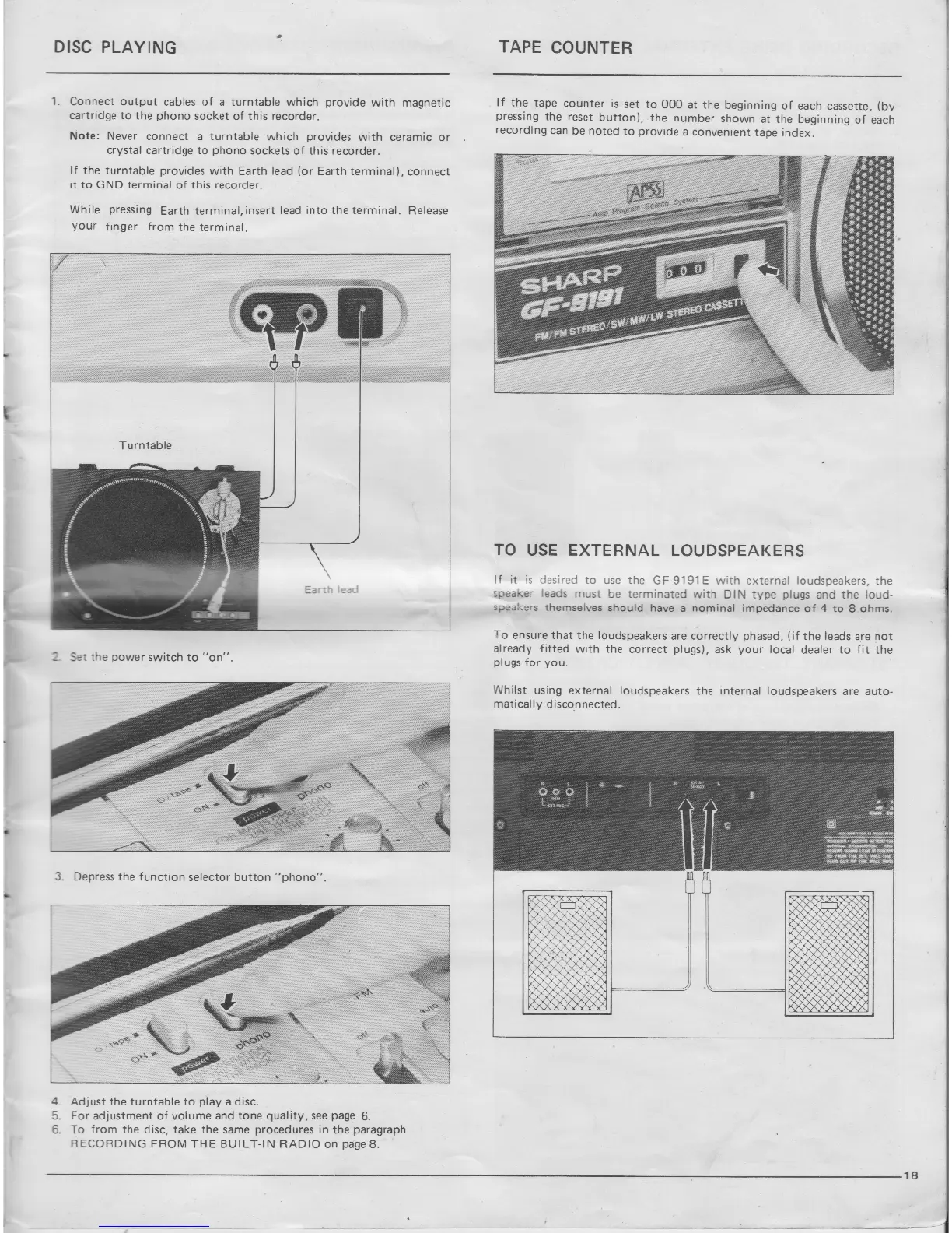 Sharp Searcher GF-9191E - Disc Playing; Tape Counter; External Loudspeakers