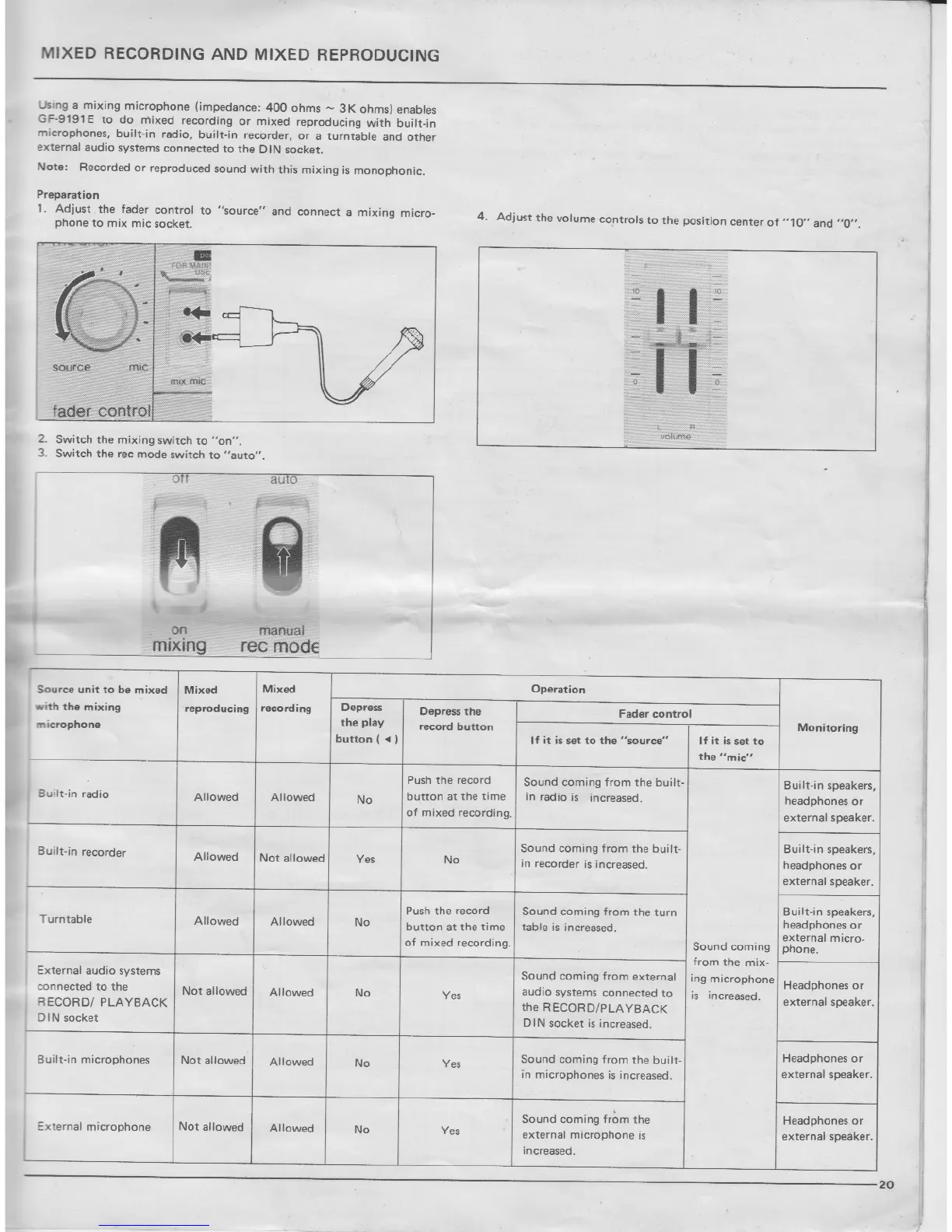 Sharp Searcher GF-9191E - Mixed Recording and Mixed Reproducing; Preparation