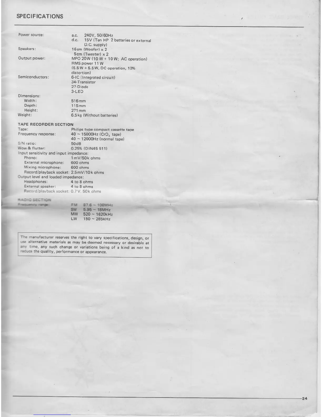Sharp Searcher GF-9191E - Specifications