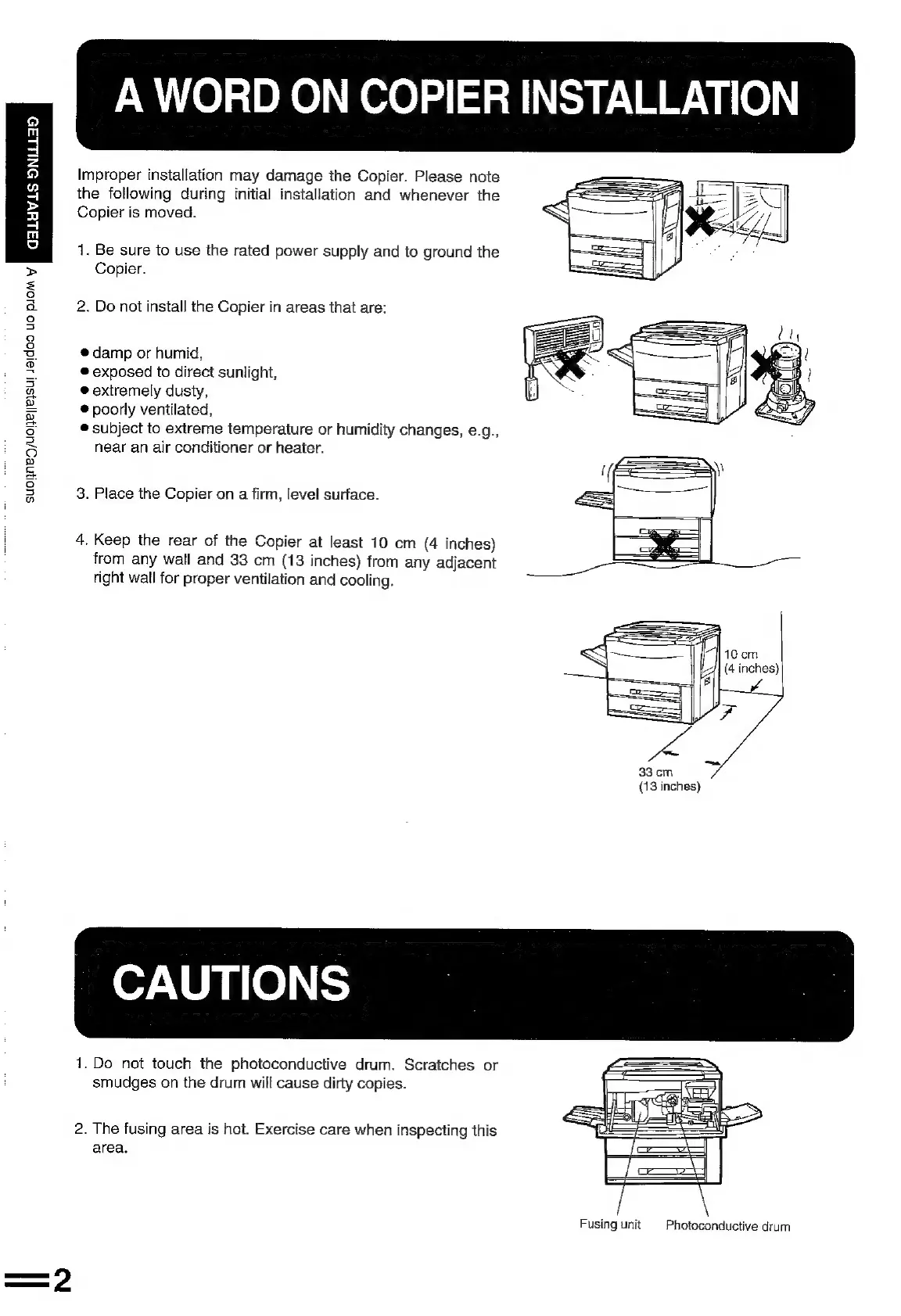 Sharp SF-2022 - A Word on Copier Installation; Cautions