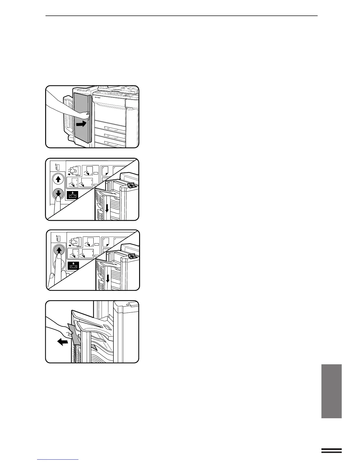If any copy is misfed in a sort bin and difficult to remove,