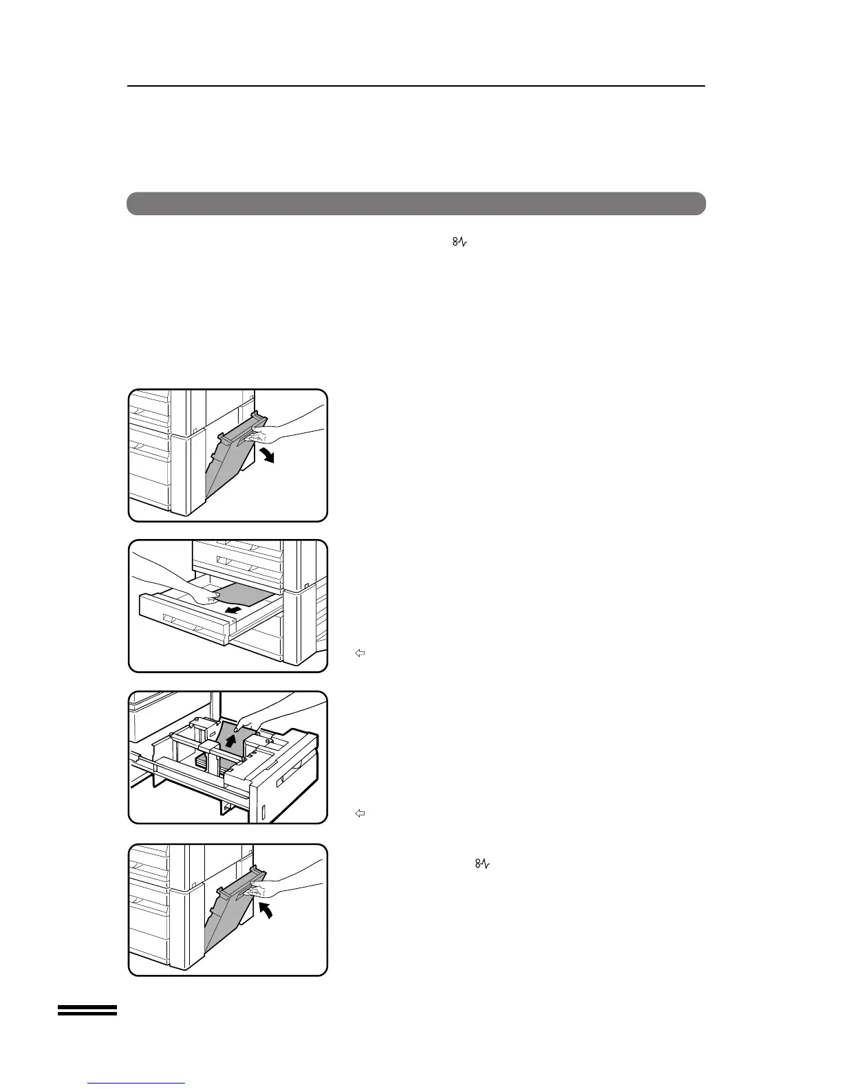 The copier will stop when a misfeed occurs. The misfeed ( )