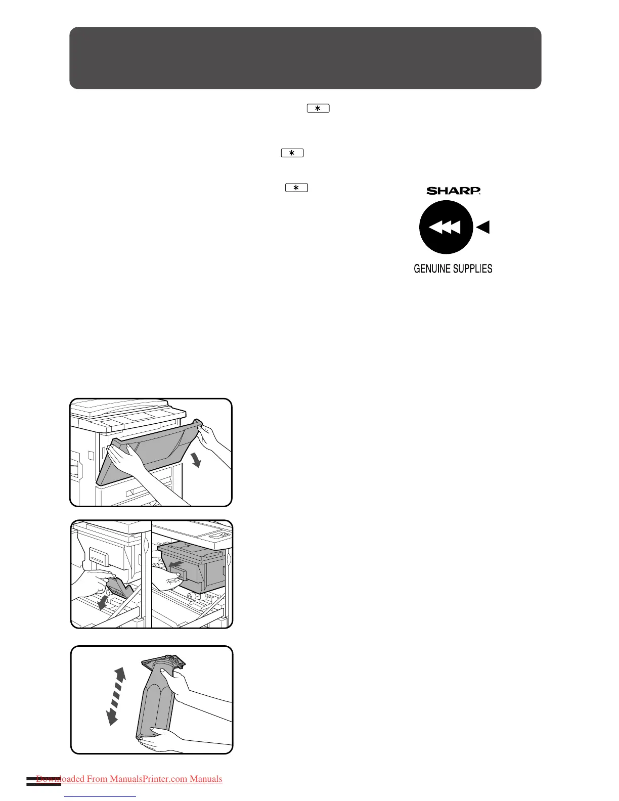 During long copy runs of multiple dark originals, “TONER RE-