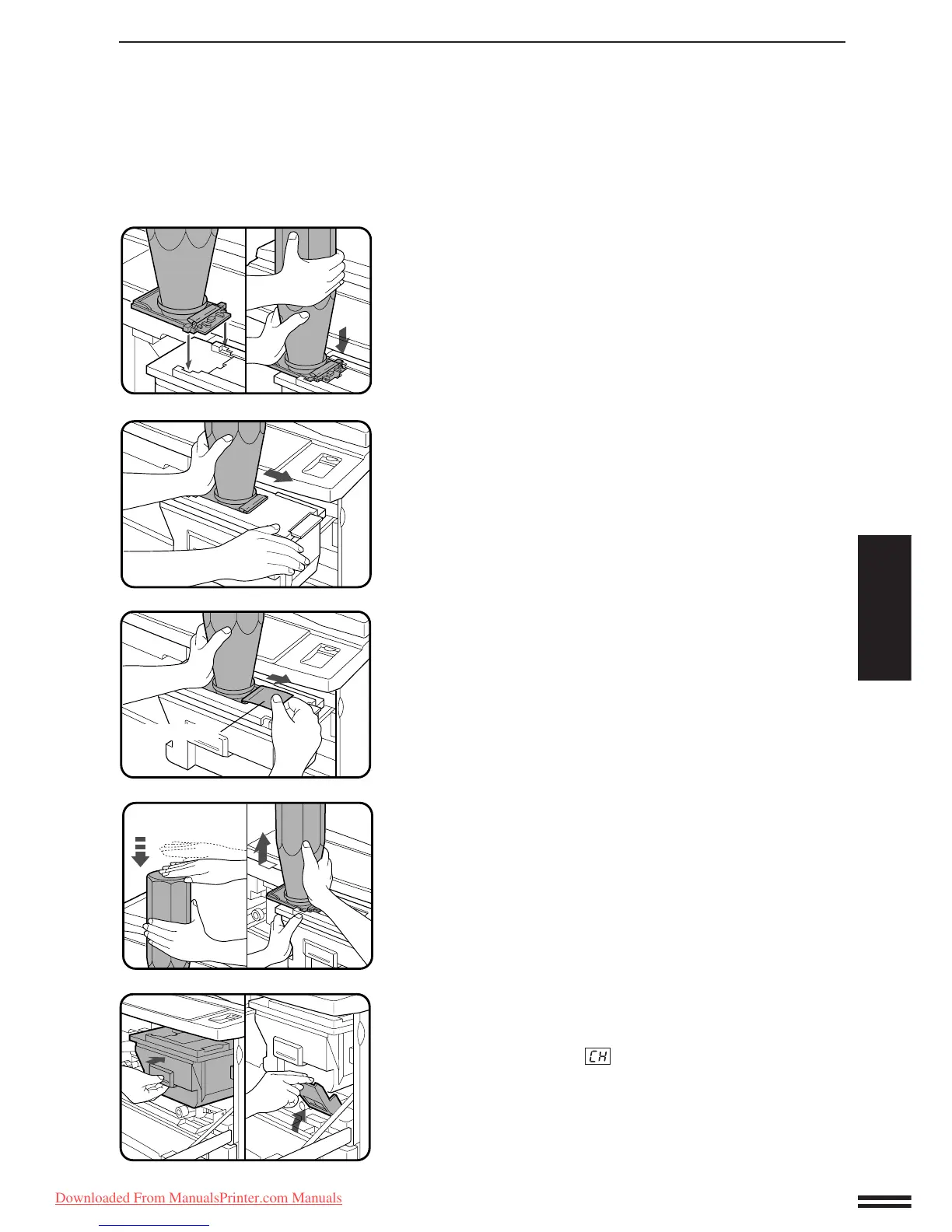 Tap on the top of the toner cartridge 5 times to release