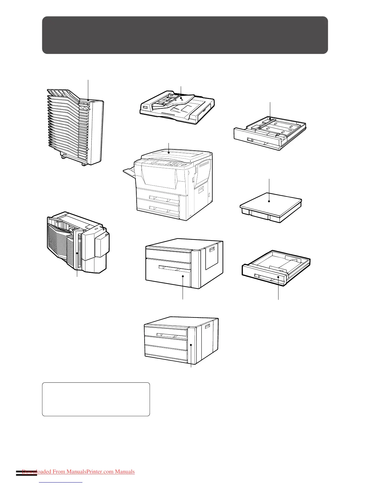 (SF-D23), and Stand/500-Sheet Paper Drawer (SF-D24). For the