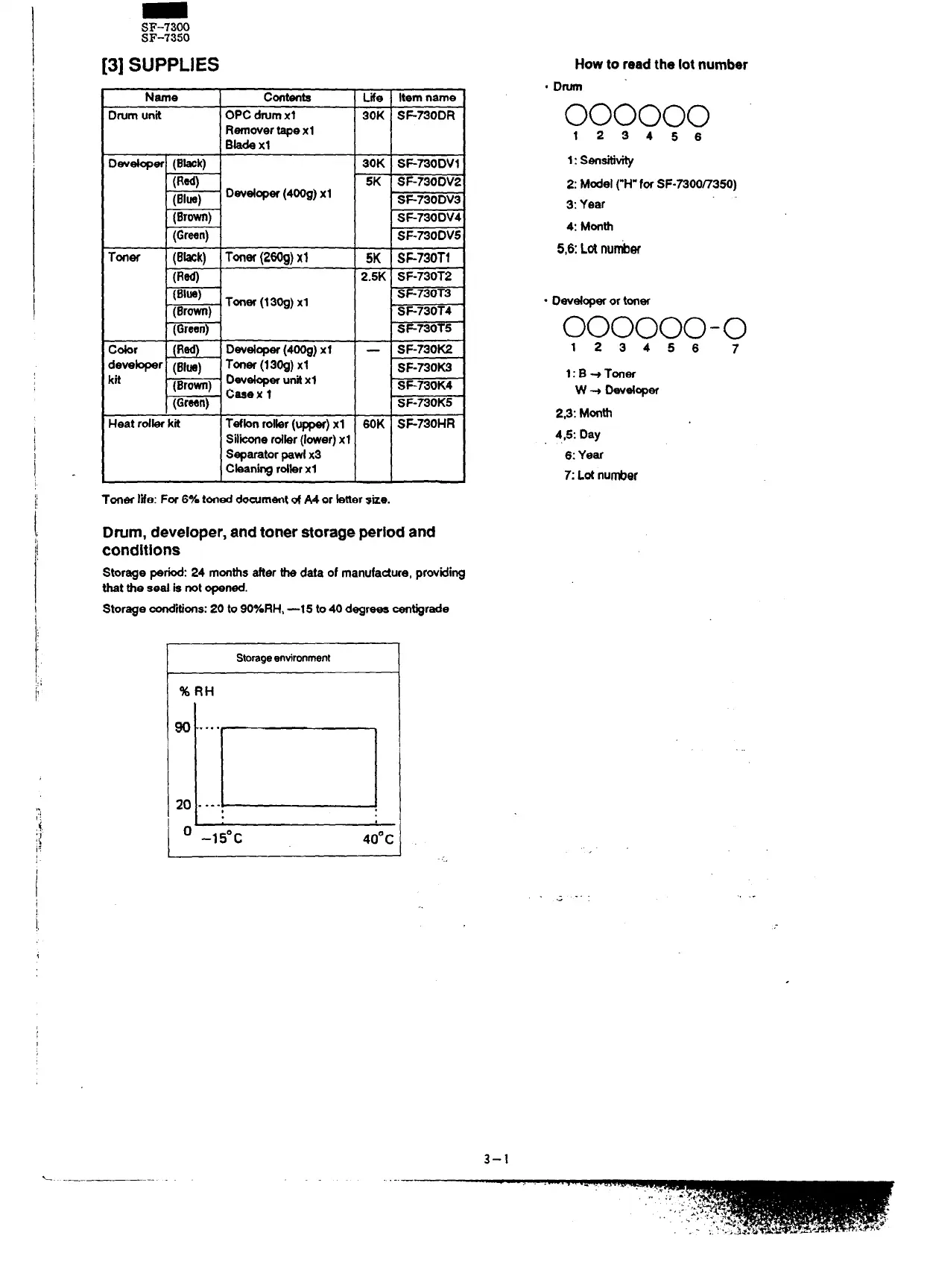 Dwm, developer, and toner storage period and