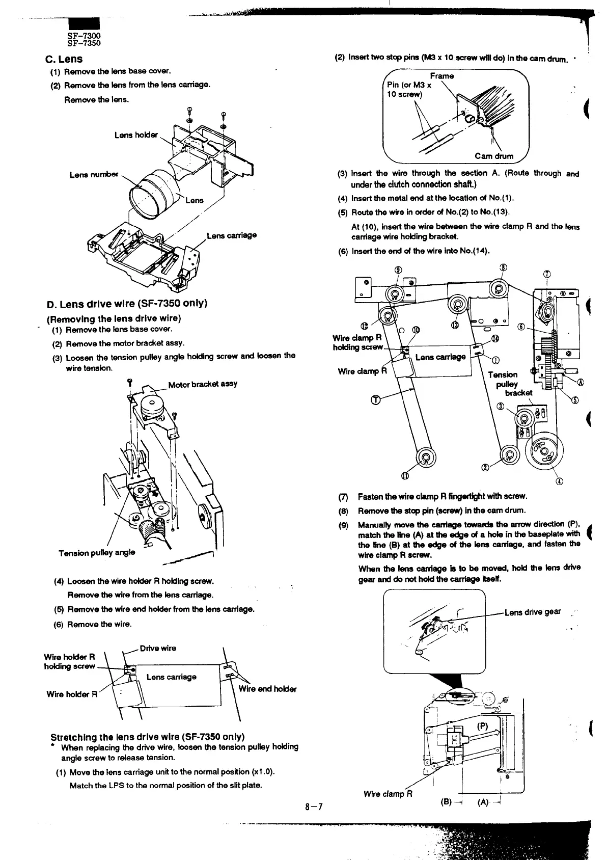 ~tretchlng the lens drive wire (SF-7350