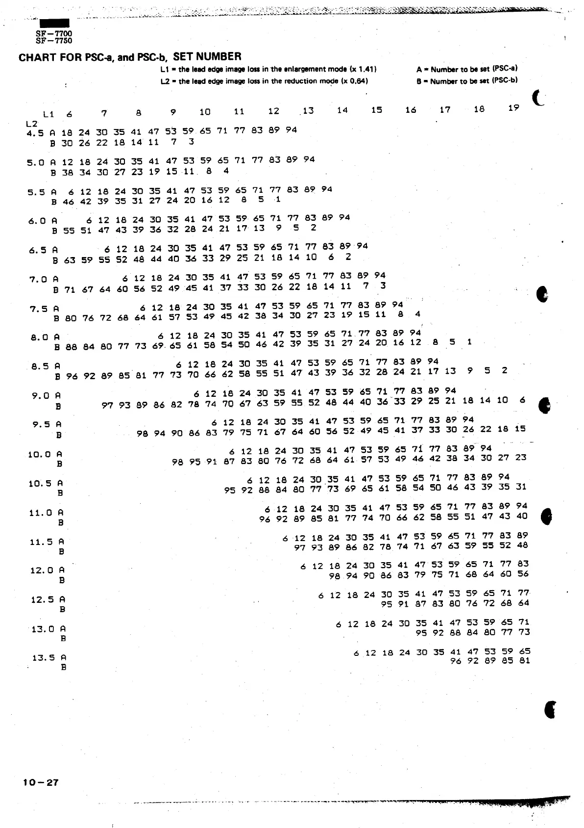 CHART FOR PSC*, andPSC-b,SET NUMBER